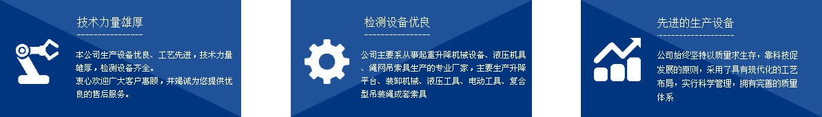 泰州市如意機械設備有限公司,座落在中國海軍誕生地江蘇泰州市,緊連328國道,東有鐵路相連,同時有滬寧、寧通高速公路相交,地理位置十分優(yōu)越,自然環(huán)境得天獨厚。 本公司系從事起重升降機械設備、液壓機具、繩網吊索具生產的專業(yè)廠家,主要生產千斤頂、液壓拉馬、軸承加熱器、升降平臺、裝卸機械、液壓工具、電動工具、復合型吊裝繩成套索具、高強纖維柔性吊裝帶、起重鏈條成套索具、橫梁吊具、注塑繩、軟梯、安全帶、安全網等幾大系列、上百種規(guī)格的產品,廣泛應用于電力、油田、大型鋼廠、機電、化工、航空、冶金、機械、鐵道、造紙、港口、建筑等領域。 本公司生產設備優(yōu)良、工藝先進,技術力量雄厚,檢測設備齊全,其中升降平臺、千斤頂、吊具、加力扳手、液壓矩扳手經泰州質量技術監(jiān)督局監(jiān)督檢驗 ...[點擊詳情] |